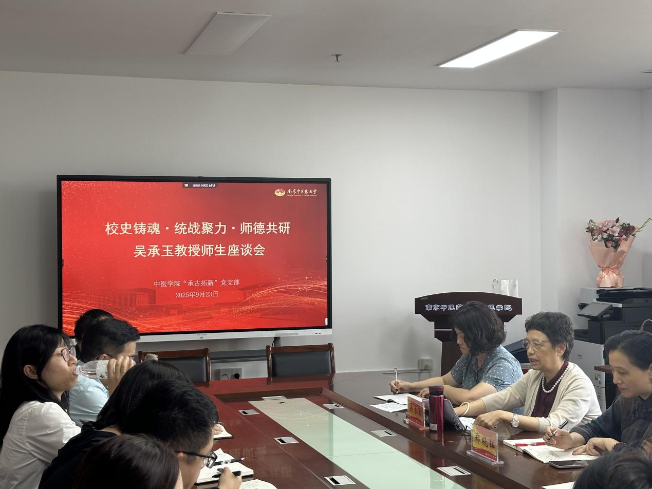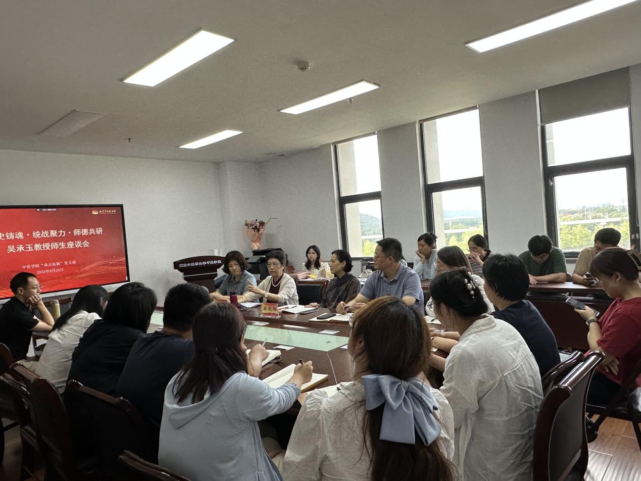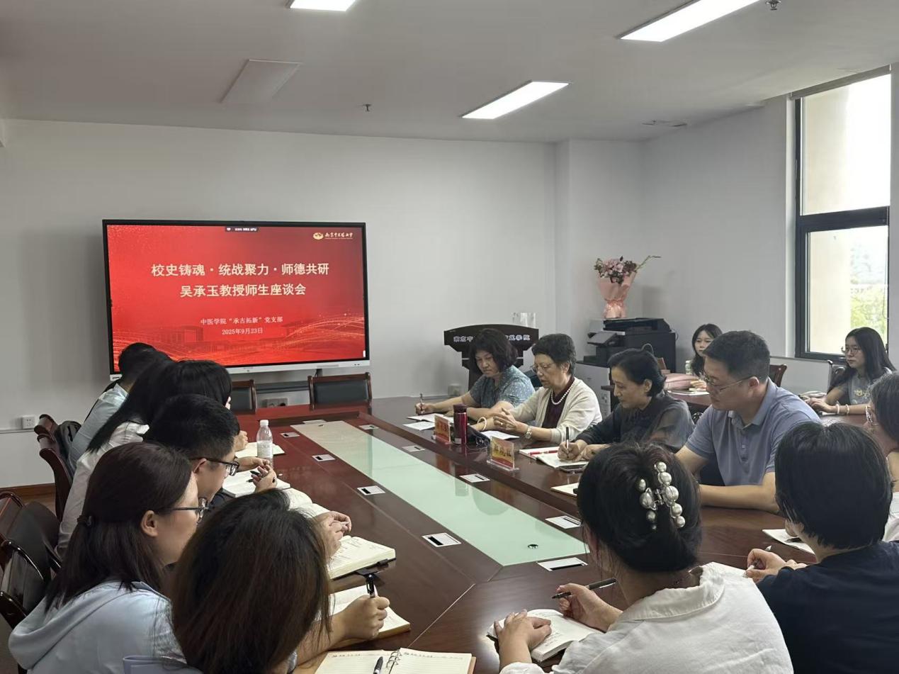 9月23日下午,金秋送爽,以“校史铸魂,统战聚力,师德共研”为主题的吴承玉教授师生座谈会在学院会议室如期举行。活动紧扣学校关工委建设要求与师德师风宣传教育部署,邀请我校全国中医药教学名师、二级教授、博士研究生导师、江苏省名中医、国家中医药管理局重点学科及江苏省重点学科中医诊断学学科带头人吴承玉教授为青年师生分享“校史铸魂,师德育人”经验。