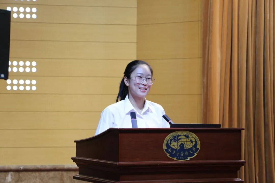 2023级中西医临床医学本博贯通培养专业的黄乐仪同学代表新生发言,她号召全体新生,立志锤炼本领、磨砺医德,做好中医药事业的传承者和创新人。中西医结合基础教研室胡玥老师作为2023级学业指导老师代表,她希望新同学们能明晰肩上责任、科学规划大学生活,并承诺与新同学一起探索、一起学习、一起成长。